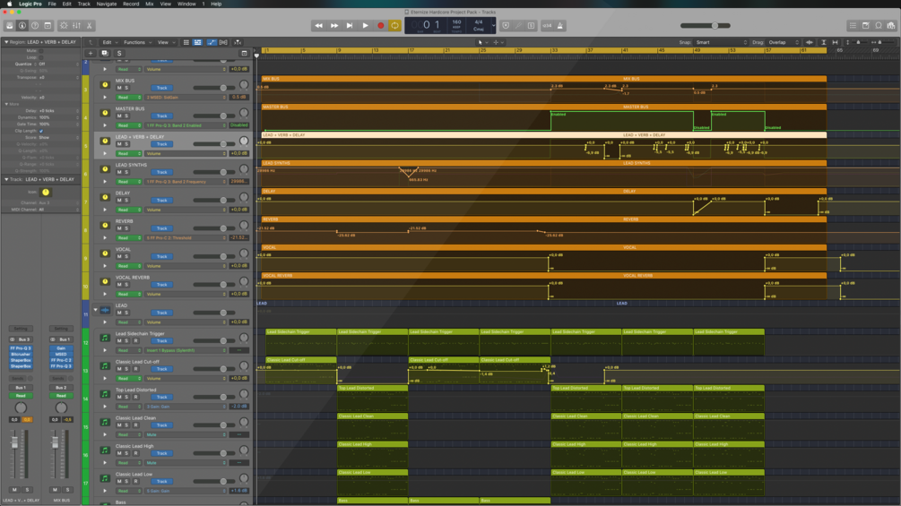 Even if you do not own all of the 3rd party plugins the project will still provide a massive insight in how to organise, mix and master harder styles music.